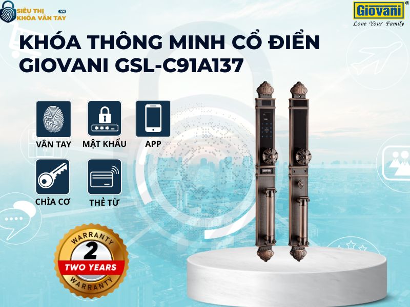 Một trong những sản phẩm được ưa chuộng hiện nay là Khóa thông minh cổ điển Giovani GSL-C91A137. Đây là sự kết hợp hoàn hảo giữa công nghệ bảo mật tiên tiến và thiết kế cổ điển đẳng cấp, mang đến giải pháp an ninh bền vững, tiện lợi và thẩm mỹ cho không gian sống cao cấp.