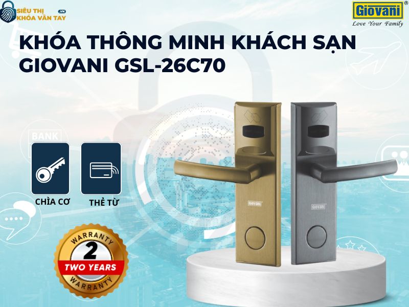 Nổi bật trong số đó, Khóa thông minh khách sạn Giovani GSL-26C70 được thiết kế với công nghệ tiên tiến, kiểu dáng sang trọng và khả năng vận hành ổn định. Sản phẩm không chỉ mang lại sự tiện lợi cho người sử dụng mà còn giúp chủ đầu tư nâng cao chất lượng dịch vụ, tạo ấn tượng hiện đại và chuyên nghiệp.