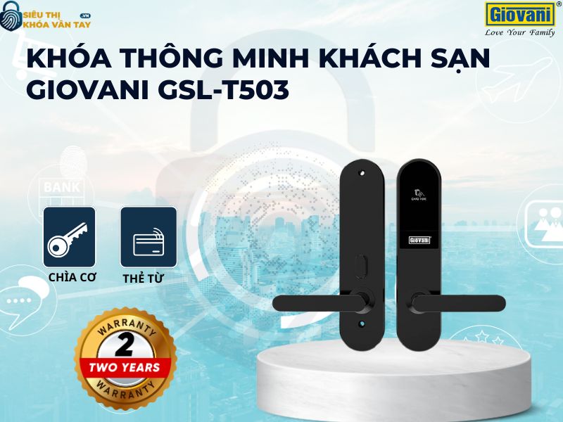 Khóa thông minh khách sạn Giovani GSL-T503 là dòng sản phẩm được thiết kế dành riêng cho khách sạn, resort và căn hộ dịch vụ. Với công nghệ tiên tiến, thiết kế tinh tế và khả năng vận hành ổn định, mẫu khóa này mang đến sự tiện lợi, hiện đại và chuyên nghiệp, phù hợp cho cả những công trình cao cấp.
