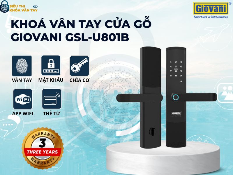 Với thiết kế sang trọng, công nghệ hiện đại và độ bền cao, khóa vân tay cửa gỗ Giovani GSL-U801B màu đen chính là giải pháp an toàn và tiện nghi cho mọi gia đình. Hãy đến ngay Siêu thị Khóa Vân Tay để trải nghiệm và sở hữu sản phẩm chính hãng với dịch vụ hậu mãi uy tín nhất.