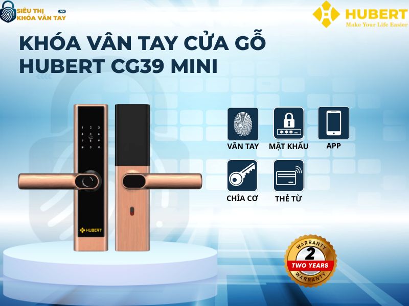 Khóa vân tay cửa gỗ Hubert CG39 MINI là lựa chọn hoàn hảo cho những ai muốn tìm kiếm sự tiện nghi, an toàn và thẩm mỹ trong cùng một sản phẩm. Với thiết kế nhỏ gọn, đầy đủ tính năng hiện đại và độ bền vượt trội, dòng khóa này chắc chắn sẽ làm hài lòng mọi gia đình và văn phòng. Liên hệ ngay với Siêu thị Khóa Vân Tay để được tư vấn chi tiết và sở hữu sản phẩm với nhiều ưu đãi hấp dẫn!