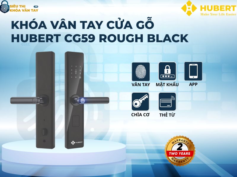 Khóa vân tay cửa gỗ Hubert CG59 ROUGH BLACK không chỉ là thiết bị bảo vệ, mà còn là điểm nhấn thẩm mỹ hiện đại cho ngôi nhà. Với thiết kế tinh tế, độ bền vượt trội và hàng loạt tính năng thông minh, đây chắc chắn là lựa chọn tối ưu cho những ai đề cao sự an toàn và tiện nghi. Liên hệ ngay với Siêu thị Khóa Vân Tay để được tư vấn chi tiết và sở hữu sản phẩm với giá ưu đãi nhất!