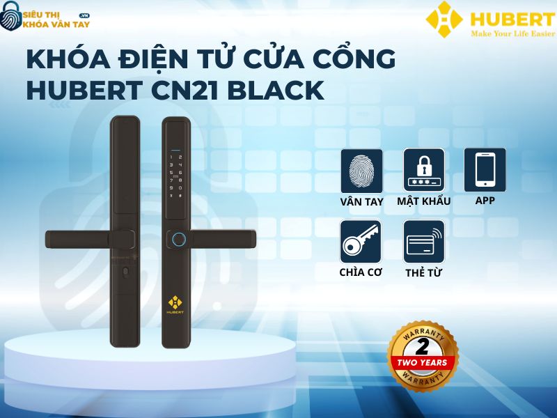 Khác với những dòng khóa thông thường, Hubert CN21 BLACK được trang bị công nghệ bảo mật tiên tiến cùng khả năng chống nước ngoài trời. Với nhiều chế độ mở khóa thông minh và thiết kế tinh tế, sản phẩm giúp gia chủ vừa an tâm về an ninh, vừa tăng thêm giá trị thẩm mỹ cho không gian sống.