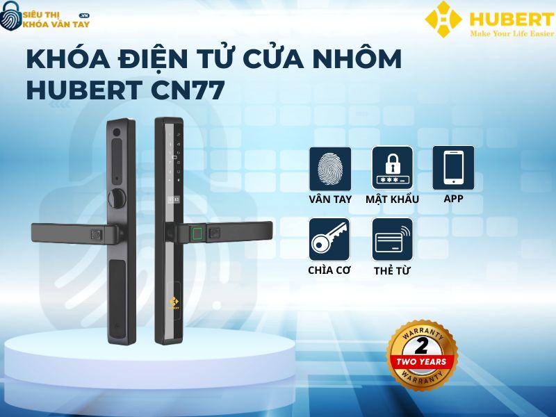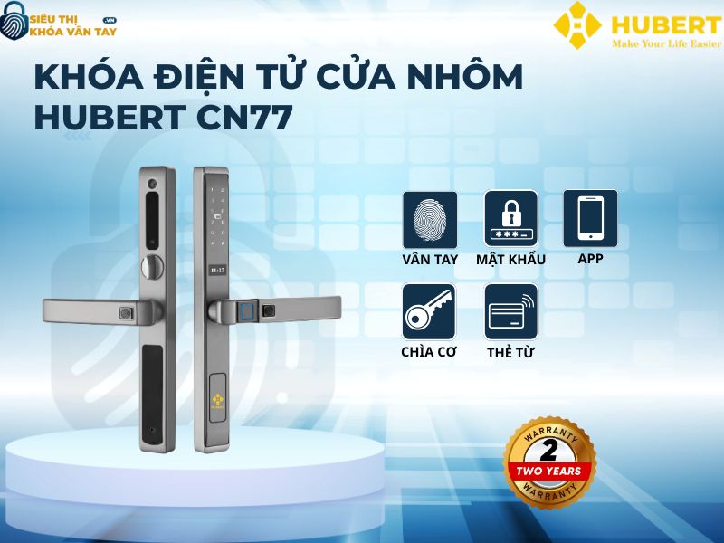 Khóa vân tay cửa nhôm Hubert CN77 không chỉ mang lại sự tiện lợi trong sinh hoạt hằng ngày mà còn nâng tầm an ninh cho ngôi nhà bạn. Với thiết kế sang trọng, tính năng hiện đại cùng khả năng chống nước IP68 bền bỉ, đây chắc chắn là sự lựa chọn lý tưởng cho mọi công trình sử dụng cửa nhôm. Liên hệ ngay Siêu thị Khóa Vân Tay để được tư vấn chi tiết và sở hữu sản phẩm với mức giá ưu đãi nhất hôm nay!