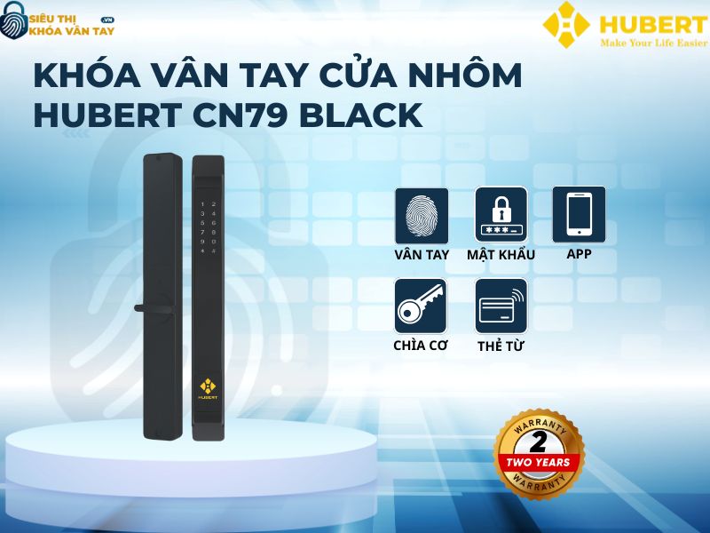 Khóa vân tay cửa nhôm Hubert CN79 BLACK không chỉ mang lại sự tiện lợi trong quản lý ra vào mà còn nâng tầm an ninh và tính thẩm mỹ cho không gian sống. Với thiết kế sang trọng, độ bền cao và công nghệ tiên tiến, đây là lựa chọn hoàn hảo cho cửa nhôm hiện đại. Liên hệ ngay Siêu Thị Khoá Vân Tay để được tư vấn chi tiết, trải nghiệm thực tế và sở hữu sản phẩm với giá tốt nhất.