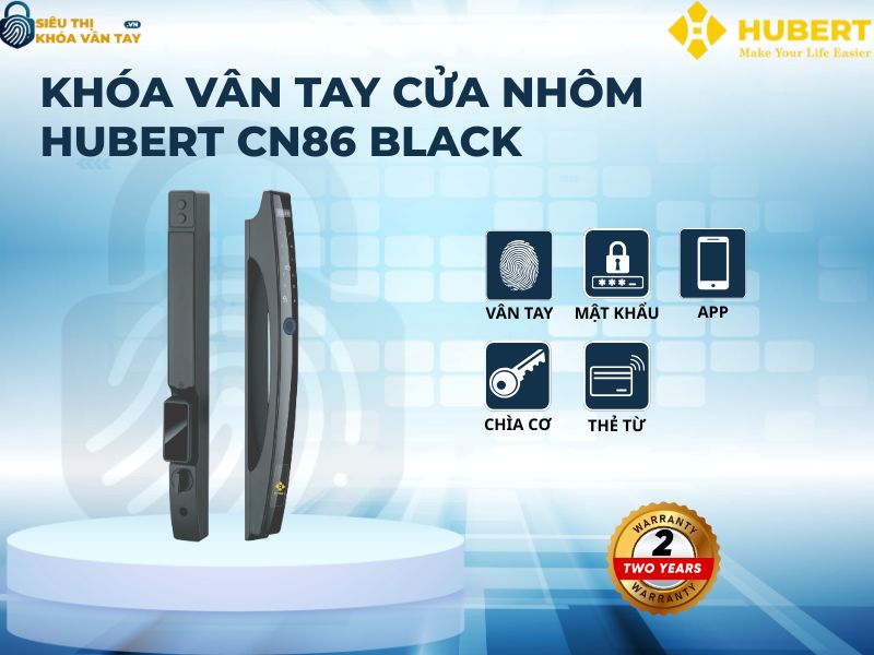 Khóa vân tay cửa nhôm Hubert CN86 BLACK là giải pháp hoàn hảo cho những ai muốn nâng cao an ninh và sự tiện nghi cho ngôi nhà. Với thiết kế tinh tế, tính năng bảo mật vượt trội và khả năng quản lý thông minh qua ứng dụng, đây chính là dòng khoá vân tay cửa nhôm mà bạn không nên bỏ qua. Liên hệ ngay với Siêu thị Khóa Vân Tay để được tư vấn chi tiết và sở hữu sản phẩm với nhiều ưu đãi đặc biệt!