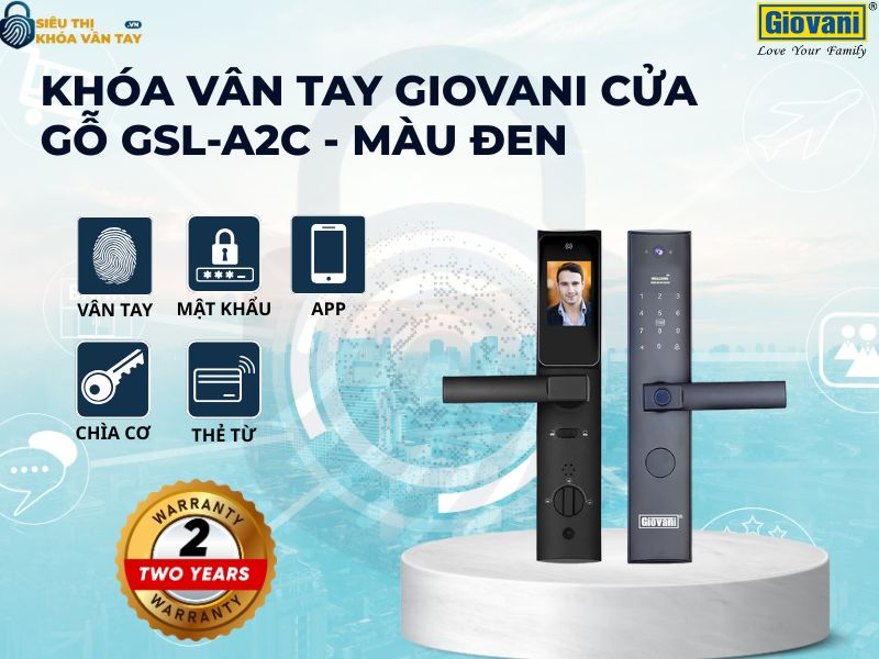 Khóa vân tay Giovani cửa gỗ GSL-A2C là lựa chọn hoàn hảo cho những ai tìm kiếm sự kết hợp giữa an toàn, tiện nghi và tính thẩm mỹ. Liên hệ ngay với Siêu Thị Khóa Vân Tay để được tư vấn chi tiết và nhận báo giá tốt nhất cho công trình của bạn.