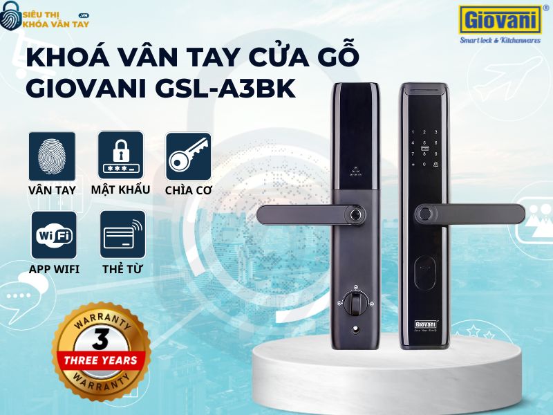 Khóa vân tay Giovani cửa gỗ GSL-A3BK màu đen không chỉ là thiết bị khóa cửa thông minh mà còn là giải pháp bảo mật toàn diện, đáp ứng nhu cầu an toàn và tiện nghi cho gia đình hiện đại. Với thiết kế sang trọng, công nghệ mở khóa tiên tiến cùng độ bền vượt trội, đây chính là sự lựa chọn lý tưởng để nâng tầm không gian sống của bạn. Nếu đang tìm kiếm khoá vân tay chính hãng hãy liên hệ Siêu Thị Khoá Vân Tay để được tư vấn chi tiết!