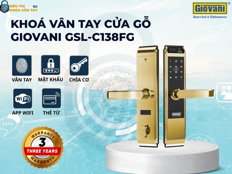 Trong thời đại công nghệ hiện nay, khoá vân tay cửa gỗ ngày càng trở thành giải pháp an ninh thông minh, thay thế hoàn hảo cho ổ khóa truyền thống. Nổi bật trong phân khúc cao cấp, khóa vân tay Giovani cửa gỗ GSL-C138FG màu vàng mang đến sự kết hợp giữa thiết kế sang trọng và công nghệ bảo mật hàng đầu.
