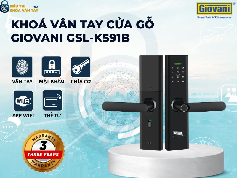Khóa vân tay Giovani cửa gỗ GSL-K591B màu đen không chỉ mang lại sự tiện nghi và an toàn mà còn góp phần nâng cao tính thẩm mỹ cho ngôi nhà của bạn. Với thiết kế hiện đại, chất liệu bền chắc và nhiều tính năng thông minh, đây chắc chắn là lựa chọn hoàn hảo cho các gia đình hiện đại. Liên hệ ngay Siêu Thị Khóa Vân Tay để sở hữu sản phẩm chính hãng cùng nhiều ưu đãi hấp dẫn hôm nay.