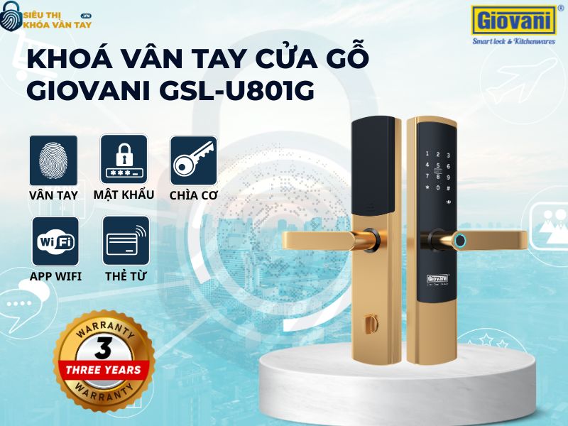 Để sở hữu sản phẩm khóa vân tay Giovani cửa gỗ GSL-U801 màu vàng chính hãng với mức giá tốt nhất, bạn nên lựa chọn những đơn vị phân phối uy tín. Siêu Thị Khóa Vân Tay hiện là đối tác đáng tin cậy, chuyên cung cấp các dòng khóa vân tay Giovani nhập khẩu chính hãng, cam kết bảo hành 3 năm cùng dịch vụ lắp đặt miễn phí tại TP.HCM.