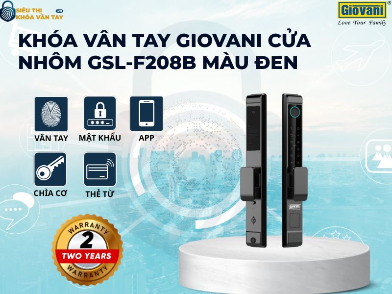 Khóa vân tay Giovani cửa nhôm GSL-208B màu đen là lựa chọn lý tưởng cho những ai muốn kết hợp giữa an toàn, tiện lợi và tính thẩm mỹ. Liên hệ ngay với Siêu Thị Khóa Vân Tay để được tư vấn chi tiết và nhận báo giá tốt nhất cho công trình của bạn.