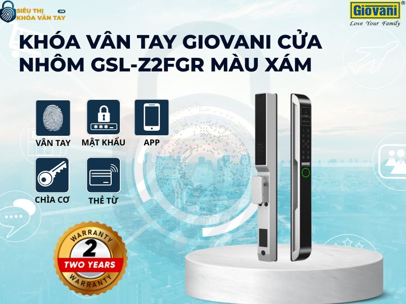 Khóa vân tay Giovani cửa nhôm GSL-Z2FGR màu xám là lựa chọn hoàn hảo để nâng tầm an ninh và phong cách cho ngôi nhà hay văn phòng của bạn. Liên hệ ngay Siêu Thị Khóa Vân Tay để được tư vấn chi tiết và nhận báo giá tốt nhất.