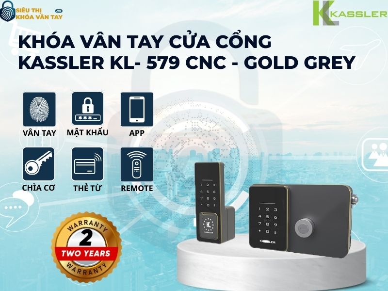 Khóa vân tay Kassler cửa cổng KL-579 CNC - GOLD GREY là lựa chọn lý tưởng cho những ai đang tìm kiếm giải pháp an ninh hiện đại, bền bỉ và sang trọng cho cửa cổng. Hãy đến ngay Siêu thị Khóa Vân Tay để trải nghiệm và sở hữu sản phẩm chính hãng Kassler với nhiều chính sách ưu đãi tốt nhất.