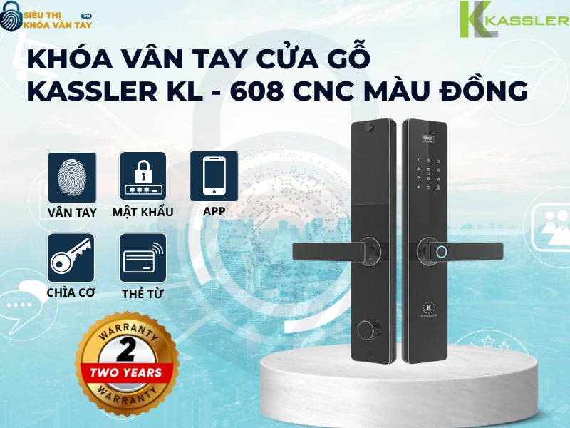 Trong xu hướng nhà thông minh hiện nay, khoá vân tay cửa gỗ đã trở thành lựa chọn tối ưu nhờ sự kết hợp hoàn hảo giữa công nghệ hiện đại và thiết kế tinh tế. Nổi bật trong dòng sản phẩm này, Khóa vân tay Kassler cửa gỗ KL - 608 CNC mang đến giải pháp an ninh toàn diện với nhiều phương thức mở cửa thông minh, thiết kế bền bỉ và tính năng hỗ trợ tiện ích cho người dùng.