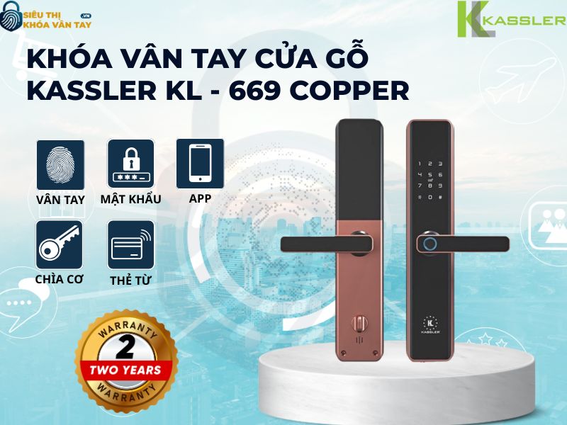 Khóa vân tay Kassler cửa gỗ KL-669 Copper không chỉ mang lại sự an toàn tuyệt đối mà còn nâng tầm đẳng cấp cho ngôi nhà. Liên hệ ngay Siêu Thị Khóa Vân Tay để mua hàng chính hãng, giá ưu đãi, lắp đặt miễn phí và nhận chế độ bảo hành – bảo trì tận tâm.