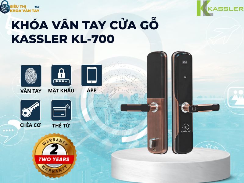 Khóa vân tay Kassler cửa gỗ KL - 700 là sự lựa chọn lý tưởng cho những ai mong muốn nâng cao an ninh, đồng thời mang lại sự tiện nghi và thẩm mỹ cho không gian sống. Với nhiều tính năng thông minh, chất liệu bền bỉ cùng chế độ bảo hành uy tín, sản phẩm chắc chắn sẽ là người bạn đồng hành đáng tin cậy của mọi gia đình. Liên hệ ngay Siêu Thị Khóa Vân Tay để sở hữu sản phẩm chất lượng với mức giá tốt nhất!