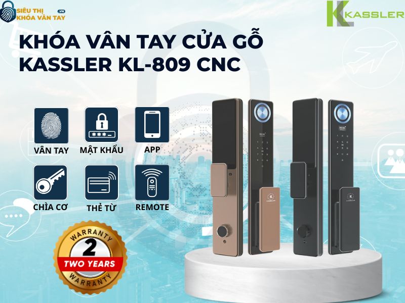 Khóa vân tay Kassler cửa gỗ KL - 809 CNC là lựa chọn hoàn hảo cho những ai đề cao sự an toàn, tiện nghi và tính thẩm mỹ trong không gian sống. Với thiết kế hiện đại, tính năng bảo mật vượt trội cùng dịch vụ hậu mãi uy tín, sản phẩm chắc chắn sẽ làm hài lòng cả những khách hàng khó tính nhất. Liên hệ ngay Siêu Thị Khóa Vân Tay để được tư vấn và nhận nhiều ưu đãi hấp dẫn khi mua sản phẩm Kassler chính hãng hôm nay!