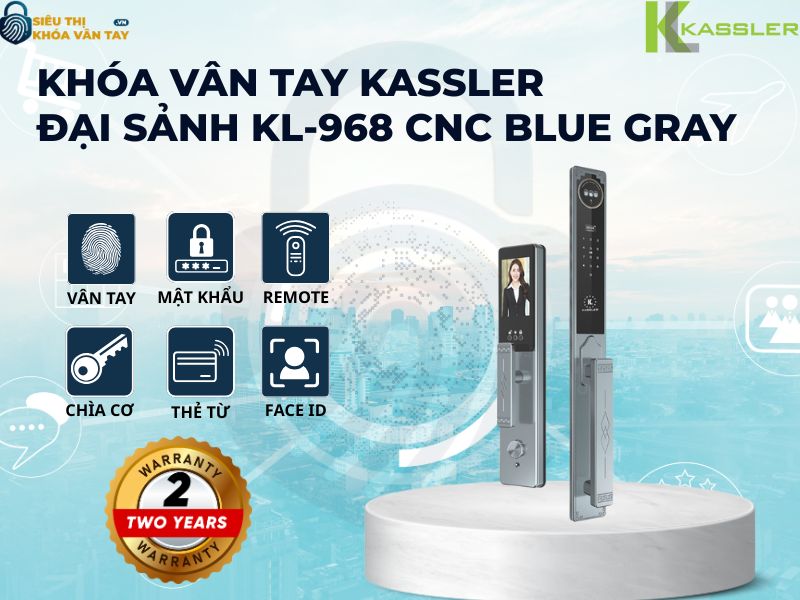 Khóa vân tay Kassler cửa gỗ KL-968 CNC Blue Gray không chỉ mang lại sự an toàn tuyệt đối mà còn khẳng định đẳng cấp cho không gian sống của bạn. Với thiết kế cao cấp cùng nhiều tính năng hiện đại, đây chính là lựa chọn lý tưởng cho các gia đình đang tìm kiếm giải pháp khóa thông minh. Liên hệ ngay Siêu Thị Khóa Vân Tay để được tư vấn chi tiết và nhận nhiều ưu đãi đặc biệt khi mua hàng hôm nay!