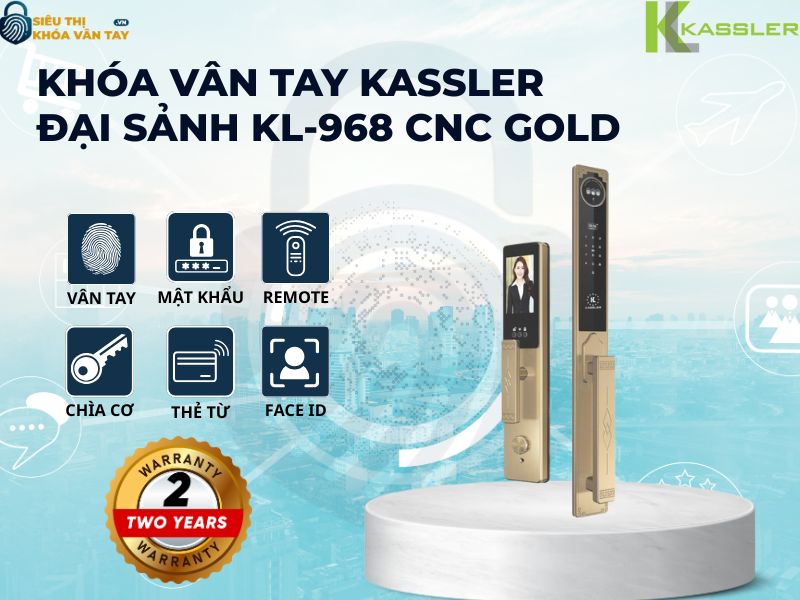 Thương hiệu Kassler vốn nổi tiếng tại Đức về các dòng khóa điện tử cao cấp, được nhiều gia đình và công trình lớn tin dùng. Mẫu KL-968 CNC Gold tiếp tục khẳng định vị thế khi tích hợp nhiều công nghệ hiện đại, đáp ứng nhu cầu ngày càng cao về an ninh và thẩm mỹ.