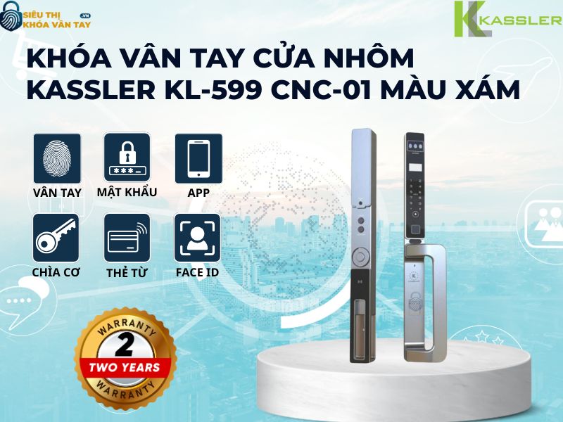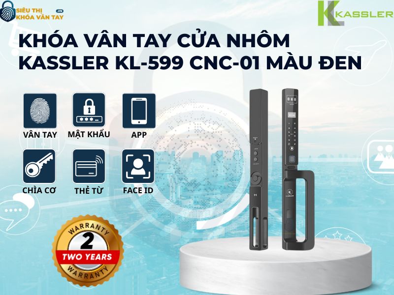 Trong thời đại công nghệ thông minh, việc lựa chọn một chiếc khoá vân tay cửa nhôm vừa an toàn vừa thẩm mỹ là nhu cầu tất yếu của nhiều gia đình. Khóa vân tay Kassler cửa nhôm KL-599 CNC-01 là một trong những model nổi bật đến từ thương hiệu Kassler – hãng khóa nổi tiếng với thiết kế tinh tế, độ bền cao và nhiều tính năng thông minh vượt trội.