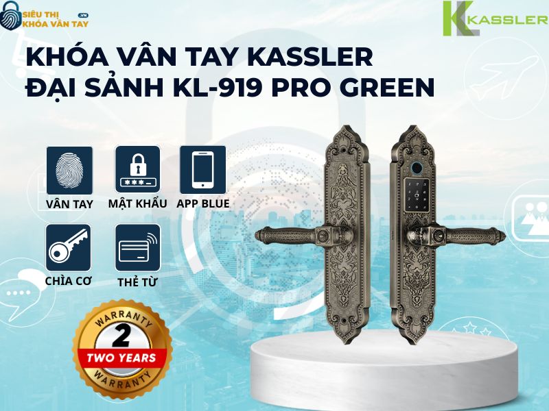 Khóa vân tay Kassler đại sảnh KL-919 PRO - GREEN không chỉ đảm bảo an toàn tuyệt đối mà còn nâng tầm đẳng cấp cho không gian sống. Hãy để Siêu Thị Khóa Vân Tay đồng hành cùng bạn trong việc lựa chọn giải pháp an ninh hiện đại và sang trọng cho ngôi nhà. Liên hệ ngay hôm nay để nhận tư vấn chi tiết và ưu đãi tốt nhất!